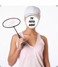 Personaliza con una foto el montaje con una chica sosteniendo una raqueta de badminton y con una gorra, donde podrás añadirle la cara que quieras. Edita gratis este efecto con tu foto y puedes convertirte en una deportista profesional en pocos pasos y sorprenderás a tus seguidores si usas este efecto como tu foto de perfil. Modifícalo si te gustan los deportes de raquetas.