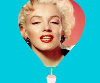 Postal de cumpleaños con tu foto en un globo y un cupcake flotante