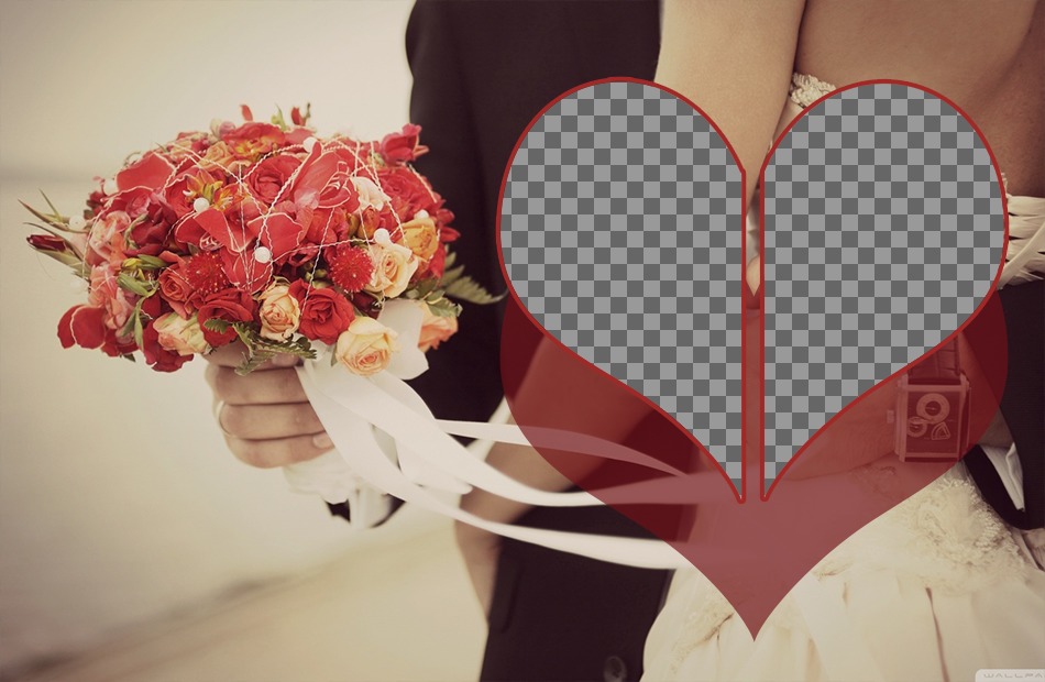 ¿Se acerca el día de tu boda? Ahora puedes crear online decenas de marcos y montajes de fotos con el que podrás felicitar a tus invitados o aprovechar como recordatorio de bodas. Crea tarjetas con tus fotos para aparecer con un vestido de novia a postales entrañables con detalles nupciales como anillos de compromiso, marcando el inicio de un matrimonio. Crea las imagenes más bonitas con tus fotos para el día más especial de tu vida.